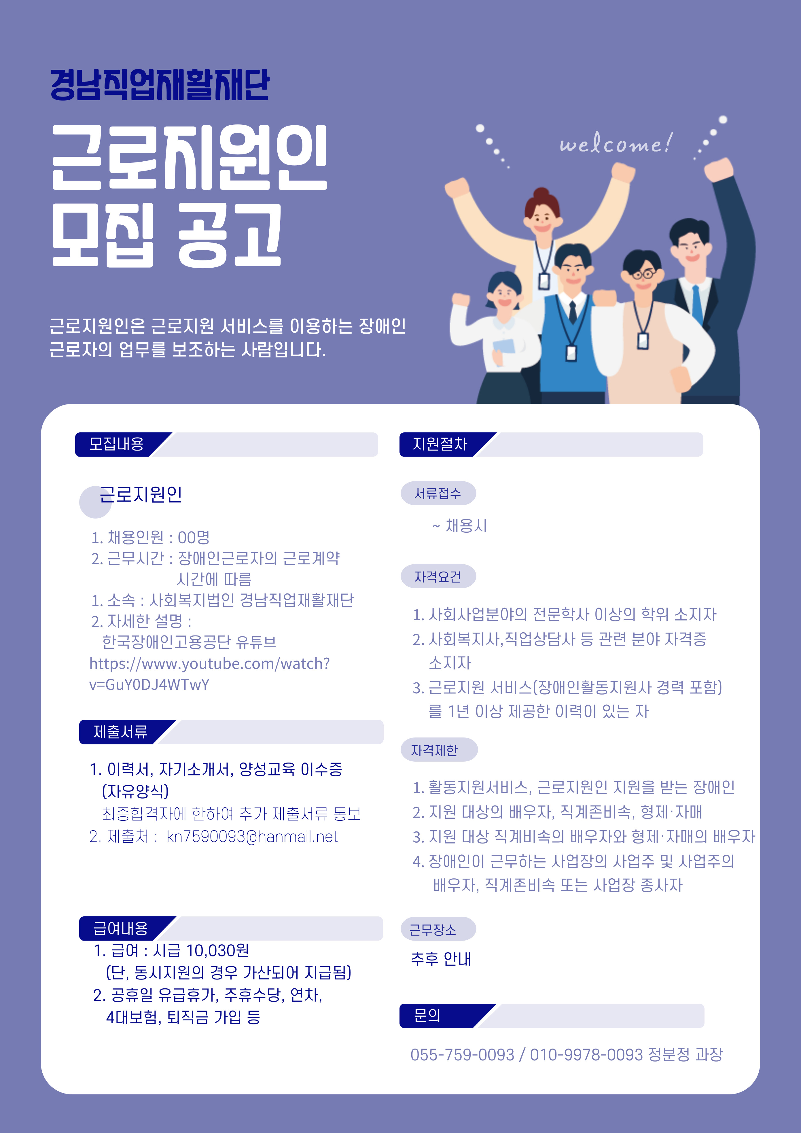 근로지원인 채용 공고 |